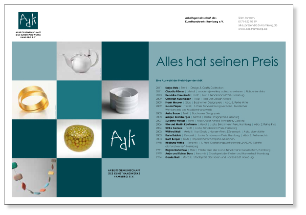 Seit 2009 stehe ich für den grafischen Auftritt der AdK und dessen Umsetzung in Print und Web.